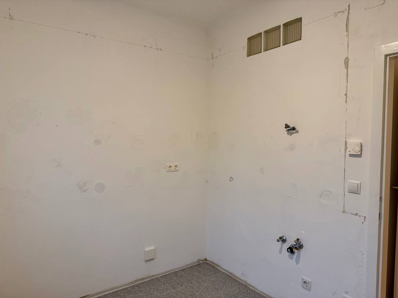 Bitte beachten Sie insbesondere den Küchenbereich: Die Wände werden nicht gespachtelt oder neu gestrichen (siehe Fotos).
