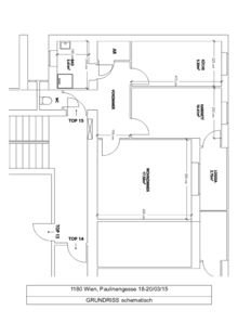 ein Wohnzimmer, ein Kabinett, eine separate Küche, Vorraum, Abstellraum, Badezimmer, WC und Speis.