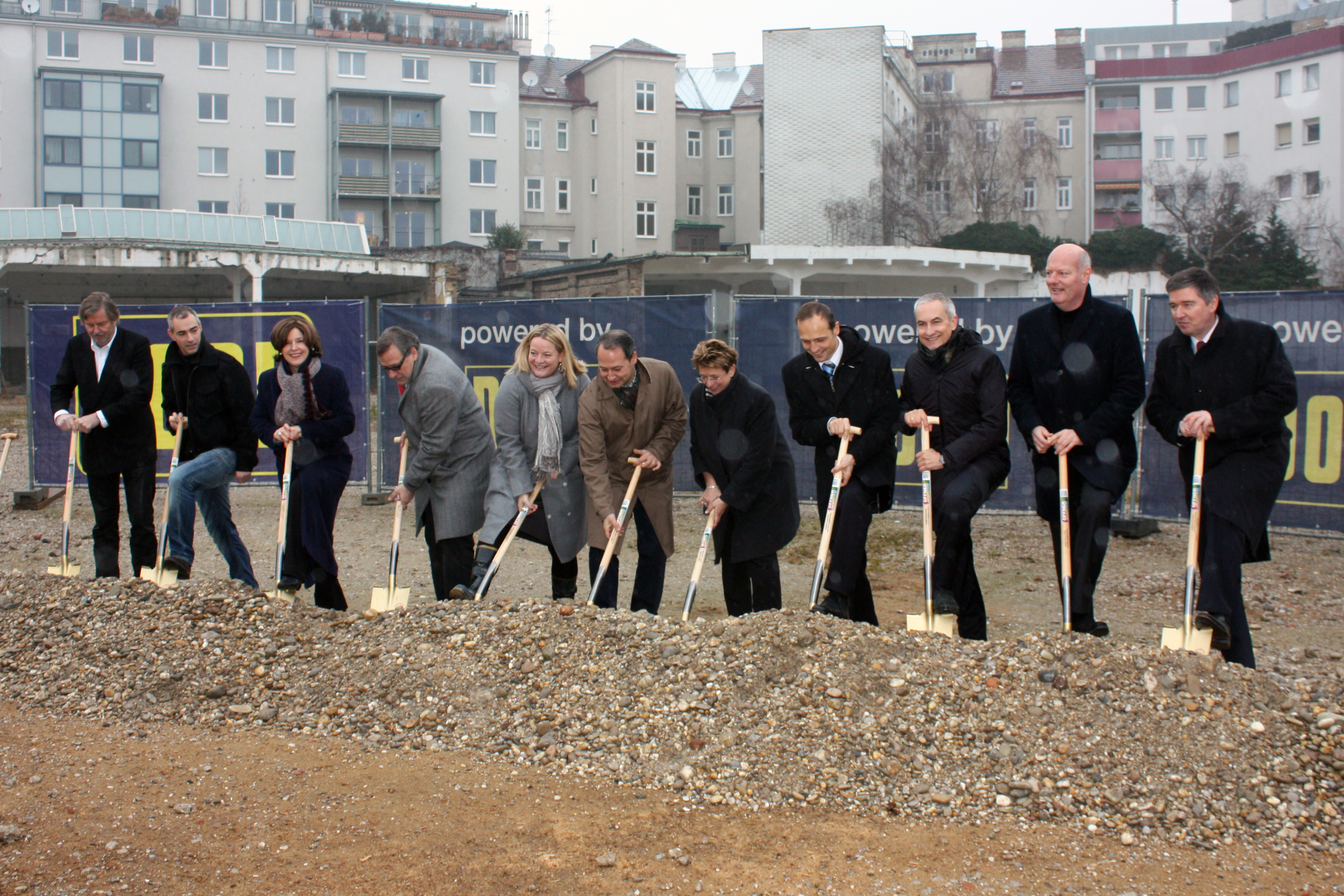 Am Freitag, 23. Dezember 2011, fand im großen Kreis der vorweihnachtlich feierliche Spatenstich statt.ÖSW Karrée Breitensee GmbH Geschäftsführerin Helga Mayer, die Vorstände der ÖSW AG Michael Pech und Wolfgang Wahlmüller sowie die WBV-GPA Geschäftsführung Andrea Holzmann und Michael Gehbauer konnten sich anlässlich dieses Termins über hohen Besuch freuen: Andreas Schieder, Staatssekretär im Bundesministerium für Finanzen, Wolfgang Gerstl, Abgeordneter zum Nationalrat und Andrea Kalchbrenner, Bezirksvorsteherin des 14. Bezirkes nahmen unter anderem an dem Spatenstich teil.