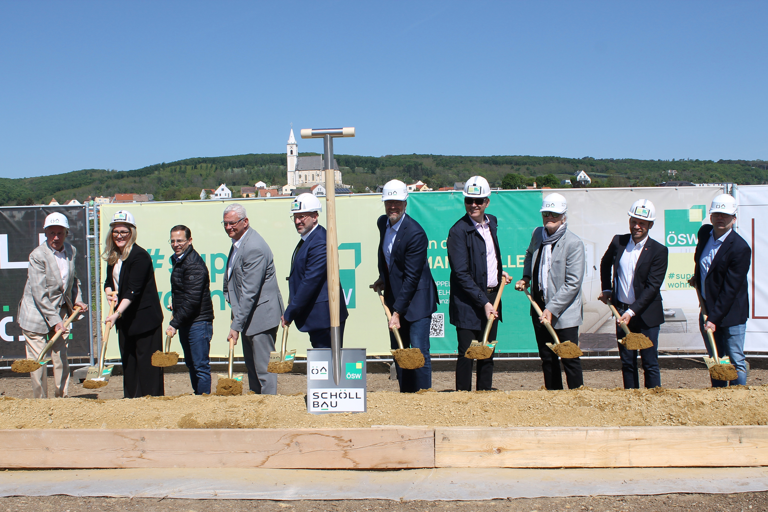 Der feierliche erste Spatenstich für das exklusive Wohnbauprojekt An der Mandelallee in Eisenstadt-Kleinhöflein fand am Montag, 28. April 2025, statt. In ruhiger und naturnaher Umgebung realisiert das Österreichische Siedlungswerk (ÖSW AG) insgesamt 16 qualitätvolle Eigenheime mit Garten.